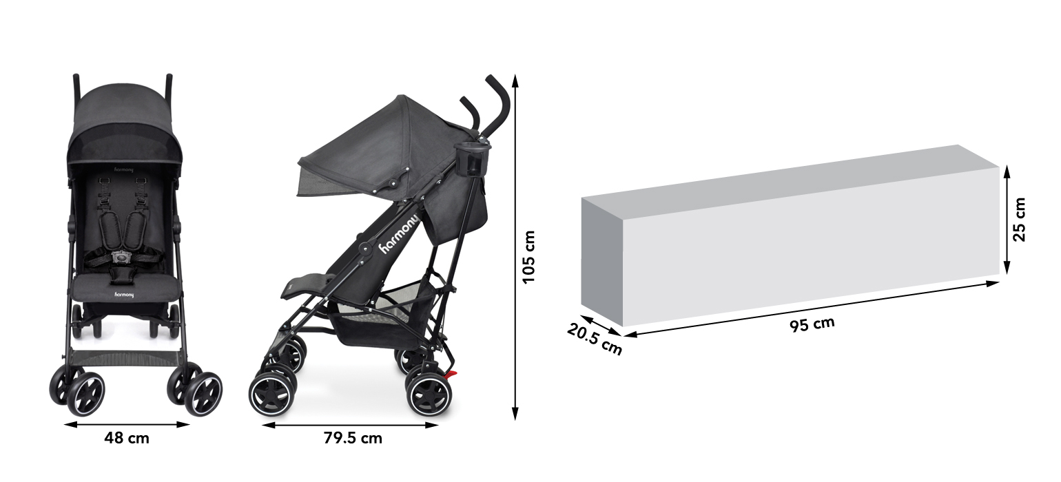 - Folded size L 105 cm x W 48 cm x H 36 cm