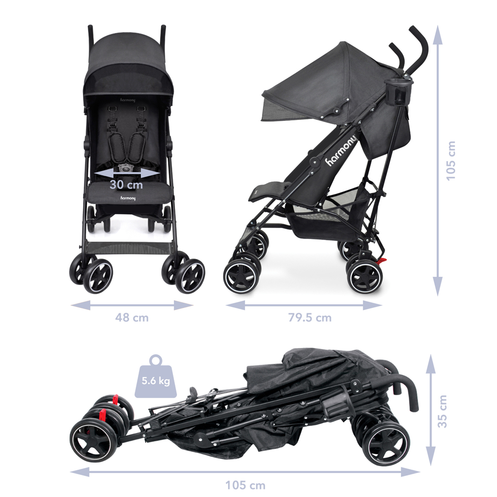 The Harmony Aspire Deluxe Umbrella Fold Pushchair is designed to make every outing effortless, blending comfort, safety, and convenience in a sleek, travel-friendly design. The 5-point harness with comfort pads keeps your little one secure while preventing strap irritation, and the multi-position adjustable backrest ensures a cosy ride. A full retractable weather-shield canopy provides protection from the elements, so you can enjoy strolls in any weather.