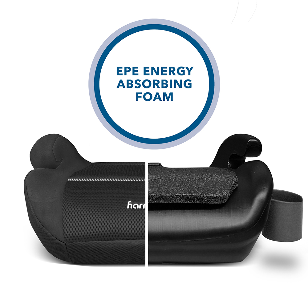 The Youth Booster Elite features an energy-absorbing structure and EPE foam throughout the seat to help manage impact forces. The shoulder belt safety guide helps promote correct seat belt positioning for a more secure fit.