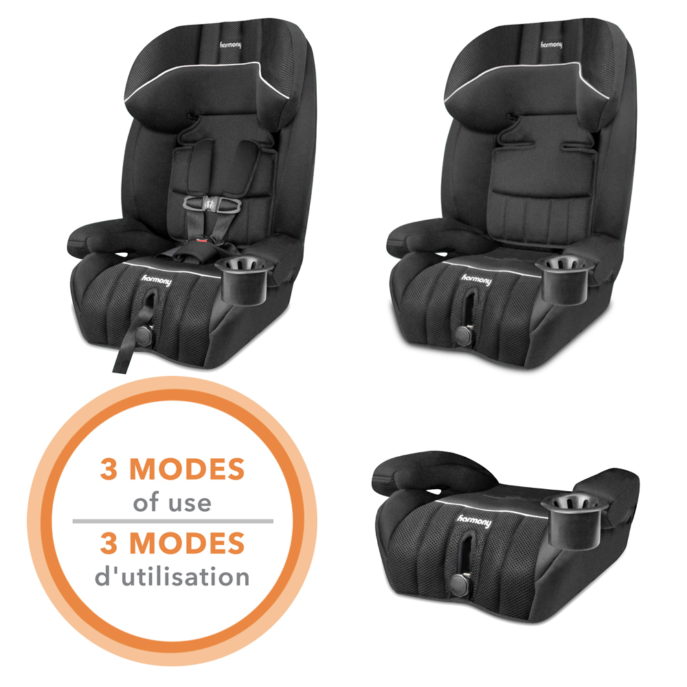 - 3-in-1 car seat: 5-point harness, high-back, and backless booster.