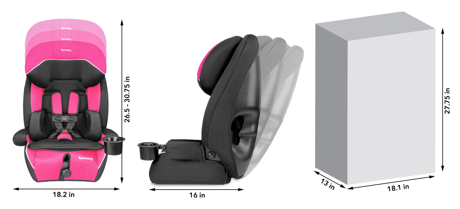 - 3-in-1 car seat: 5-point harness, high-back, and backless booster.